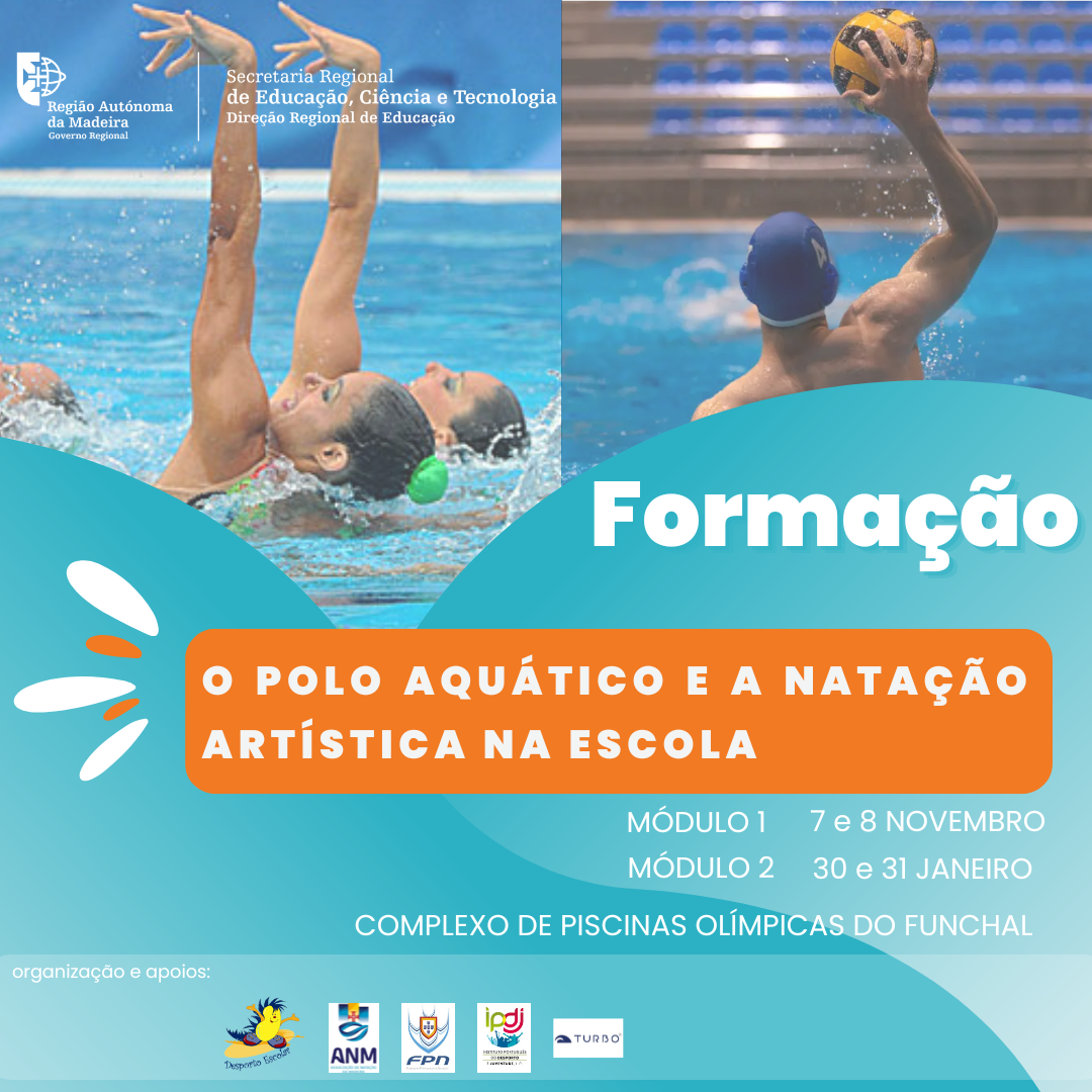 Formação válida para progressão na carreira dos docentes dos grupos de recrutamento indicados como destinatários.A Secretaria Regional de Educação, Ciência e Tecnologia, através da Direção Regional de Educação, promove uma formação dedicada ao Polo Aquático e à Natação Artística no contexto escolar. A iniciativa decorre no Complexo de Piscinas Olímpicas do Funchal, dividida em dois módulos: